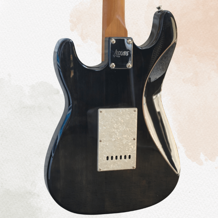 The body of the Luxars S-G25 Stratocaster electric guitar is constructed from solid alder with flamed maple design (Sorry! it must be hard to see the flamed maple design in the picture), a material widely recognized in the guitar manufacturing industry for its excellent tonal characteristics. One of the paramount advantages of using solid alder in guitar bodies is its weight. Alder is relatively lightweight compared to other woods such as mahogany or maple, which can contribute to a more comfortable playing experience, particularly during extended sessions.