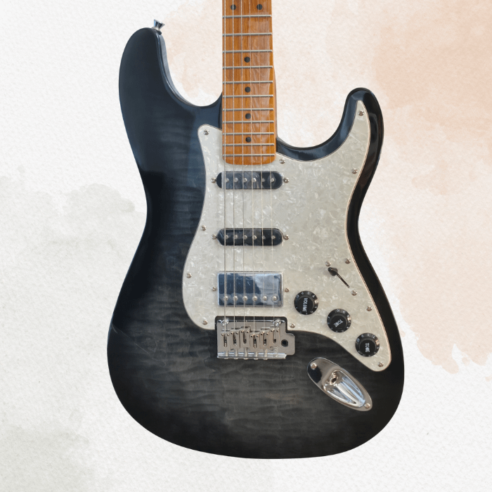 The guitar features an HSS (humbucker/single coil/single coil) arrangement, incorporating Alnico 5 pickups. This configuration is strategically designed to provide a broad spectrum of sounds, making the S-G25 suitable for various musical genres. A standout feature of this budget guitar is its 24k potentiometer, which plays a critical role in adjusting volume and tone. The premium quality of the potentiometer is pivotal for maintaining signal integrity, allowing for smooth adjustments without introducing unwanted noise.